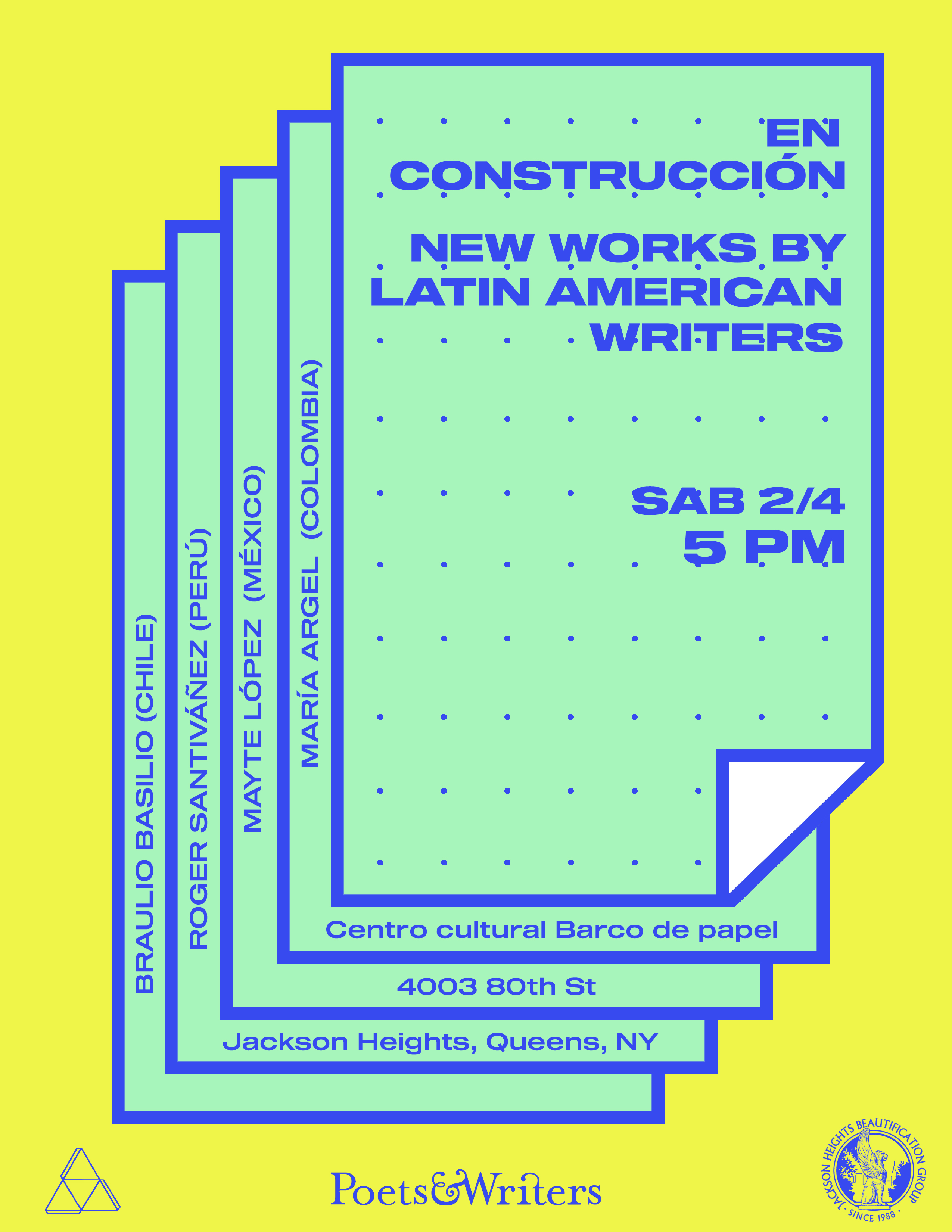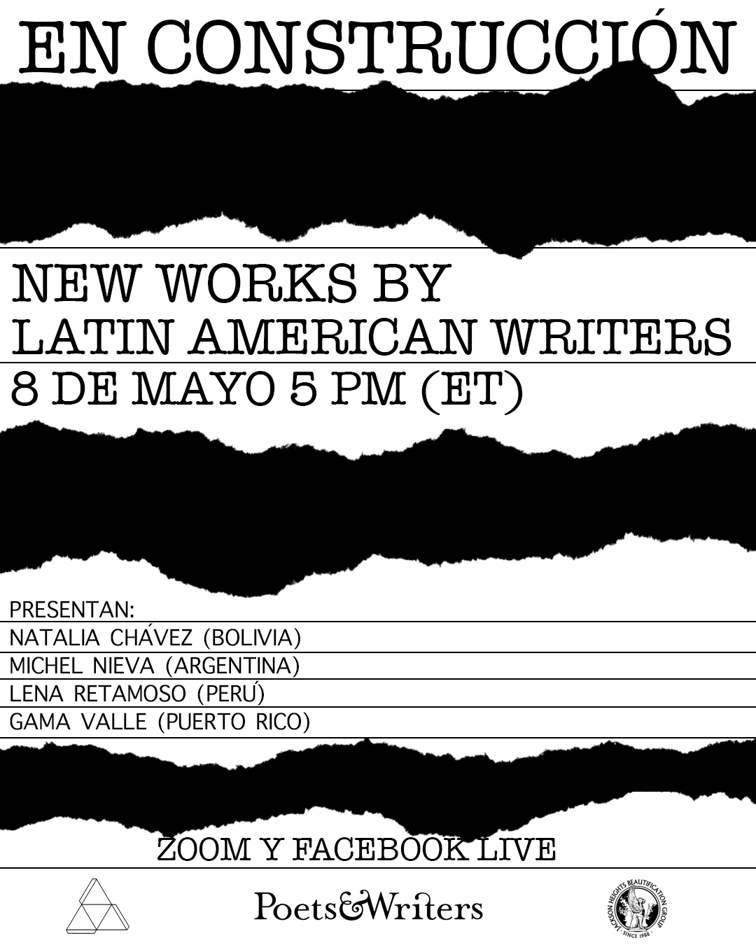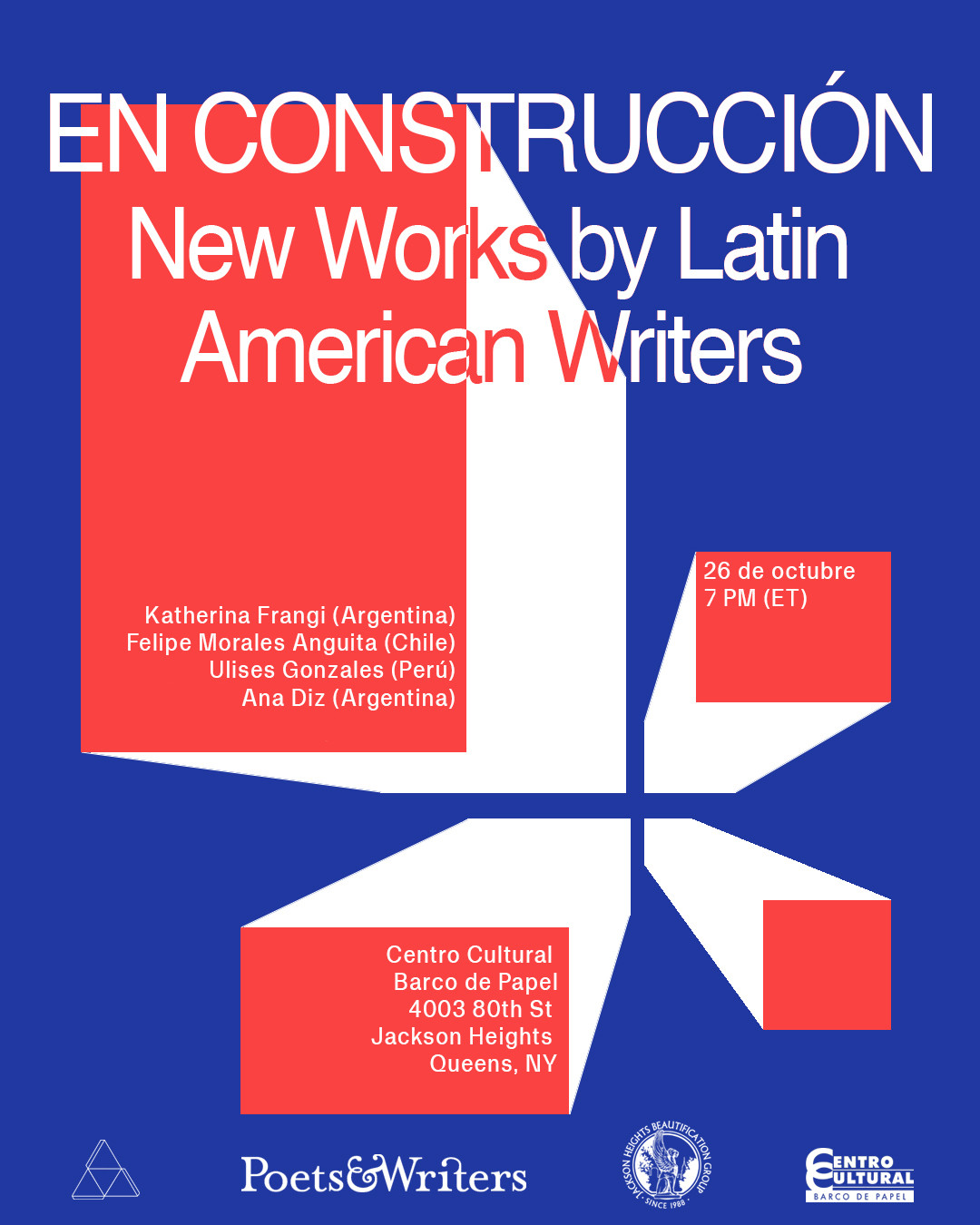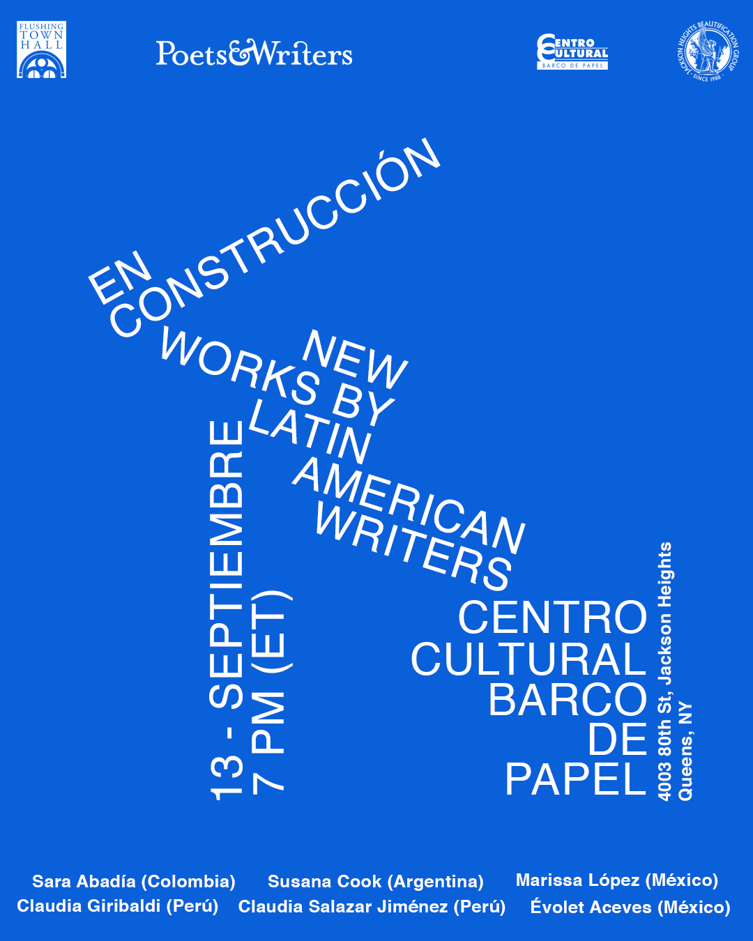 EN CONSTRUCCIÓN is a series of literary readings that offers a creative and collaborative space for New York-based Latinx and Latin American writers. EN CONSTRUCCIÓN provides the opportunity for writers to showcase their work and to establish a professional network in their native languages, primarily Spanish and Portuguese.
