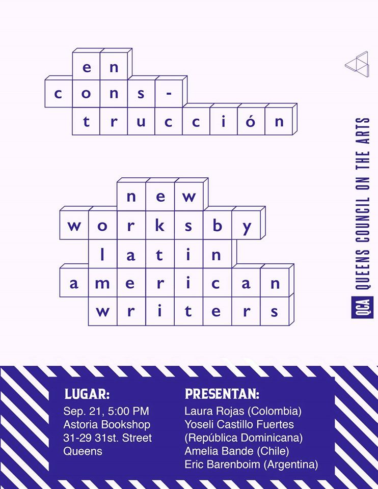 EN CONSTRUCCIÓN is a series of literary readings that aims to offer a creative and collaborative space for New York-based writers whose primary language is Spanish. En Construcción gives writers the opportunity to showcase their work with an artistic and wider audience in order to share literary concerns, creative tools, general ideas, and constructive feedback. Additionally, En Construcción provides writers with a platform to establish or to tap into a professional network in New York City and, more particularly, in Queens.